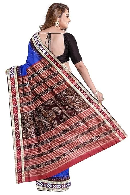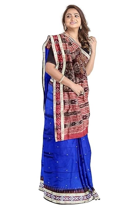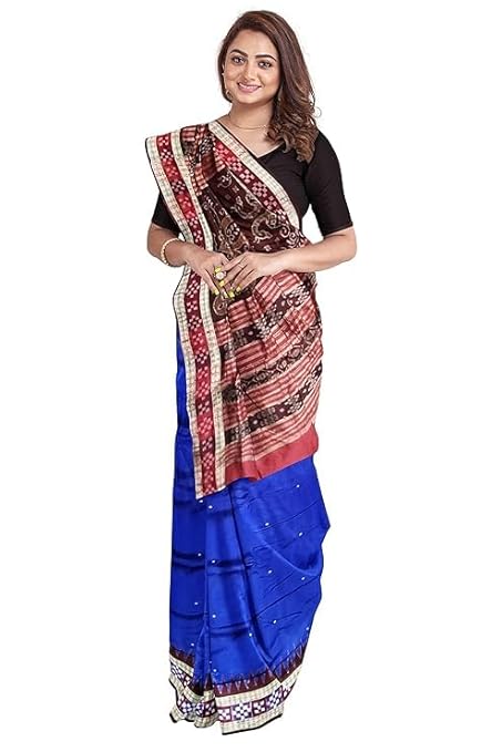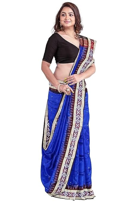 Odisha Handloom Handmade Pure Bomkai Silk Saree Khandua Natural Silk Ikkat Sambalpuri Saree For Women/Ethnic Wear/Traditonal Saree/Handloom Saree With Regular Fit Blouse Piece