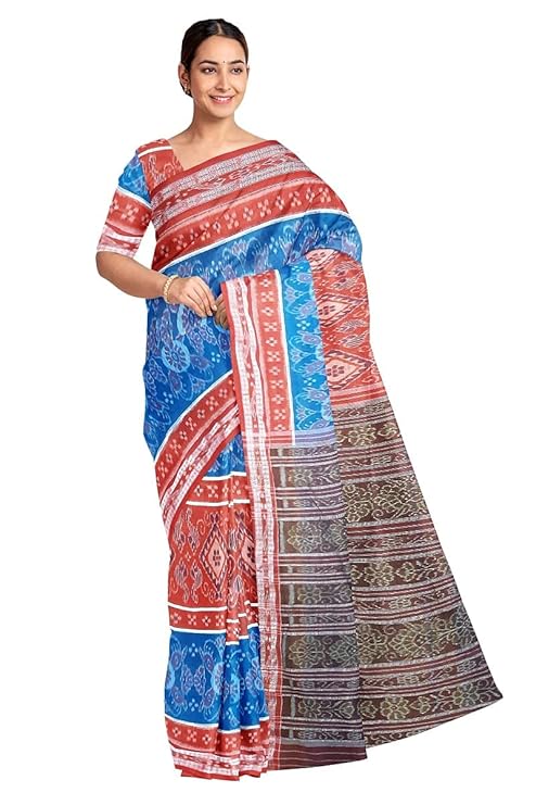 Odisha Sambalpuri Handloom Ikat Women Cotton Saree, Odisha Handloom Handmade Pure Cotton Khandua Saree, Ikkat Orissa Traditional Handloom Saree Without Blouse 12