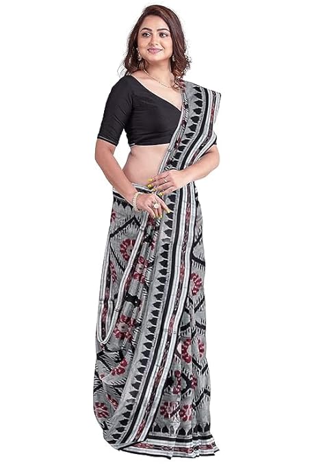 Odisha Sambalpuri Handloom Ikat Women Cotton Saree, Odisha Handloom Handmade Pure Cotton Khandua Saree, Ikkat Orissa Traditional Handloom Saree Without Blouse EMS190