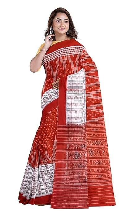 Odisha Sambalpuri Handloom Ikat Women Cotton Saree, Odisha Handloom Handmade Pure Cotton Khandua Saree, Ikkat Orissa Traditional Handloom Saree Without Blouse EMS207