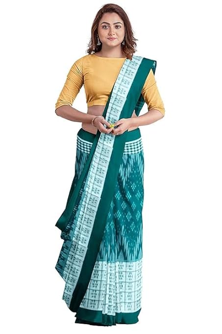Odisha Sambalpuri Handloom Ikat Women Cotton Saree, Odisha Handloom Handmade Pure Cotton Khandua Saree, Ikkat Orissa Traditional Handloom Saree Without Blouse EMS255