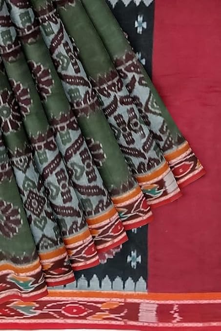 Odisha Sambalpuri Handloom Ikat Women's Cotton Saree, Odisha Handloom Handmade Pure Cotton Khandua Saree, Ikkat Orissa Traditional Handloom Saree without Blouse