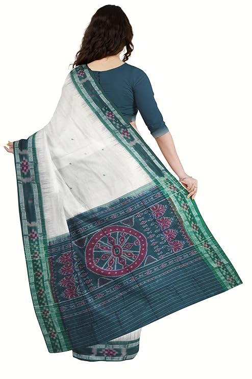 Odisha Sambalpuri Handloom Ikat Women's Cotton Saree Traditional Craftsmanship Double Ikat Weaving Floral and Rich Cultural Heritage (M-7)