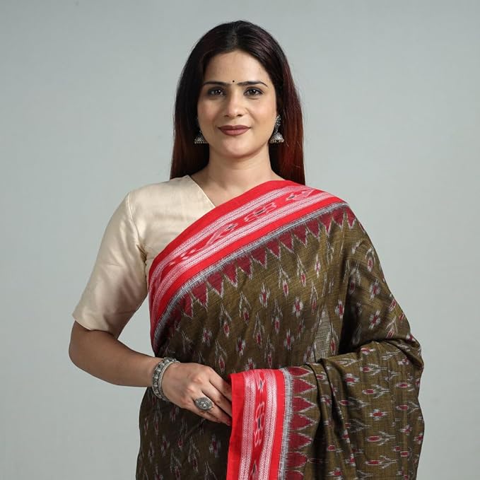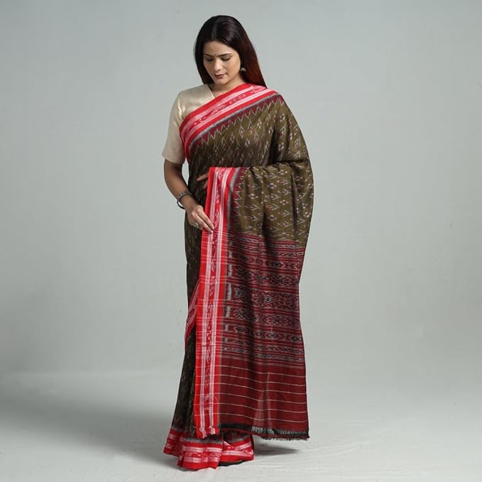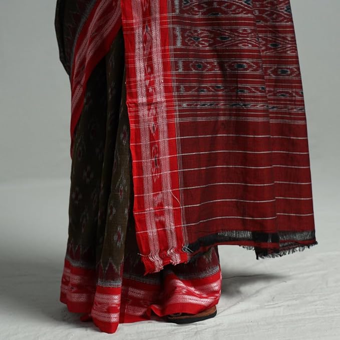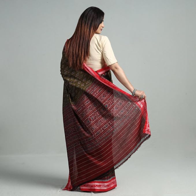 Odisha Sambalpuri Handloom Ikat Women's Cotton Saree Traditional Double Ikat Weaving Floral and Rich Cultural Ethnic Saree Without Blouse
