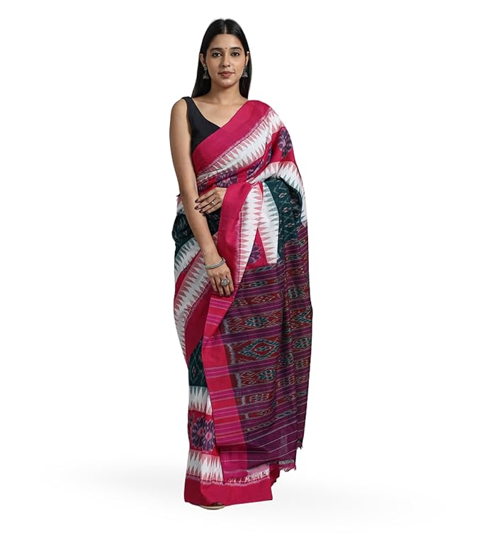 Odisha Sambalpuri Handloom Ikat Women's Cotton Saree Traditional Craftsmanship Double Ikat Weaving Floral and Rich Cultural Handmade Ethnic Saree for Women