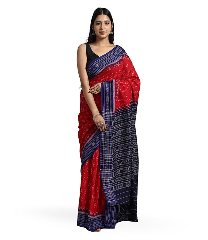 Odisha Sambalpuri Handloom Ikat Women's Cotton Saree Traditional Craftsmanship Double Ikat Weaving Floral and Rich Cultural Handmade Ethnic Saree for Women