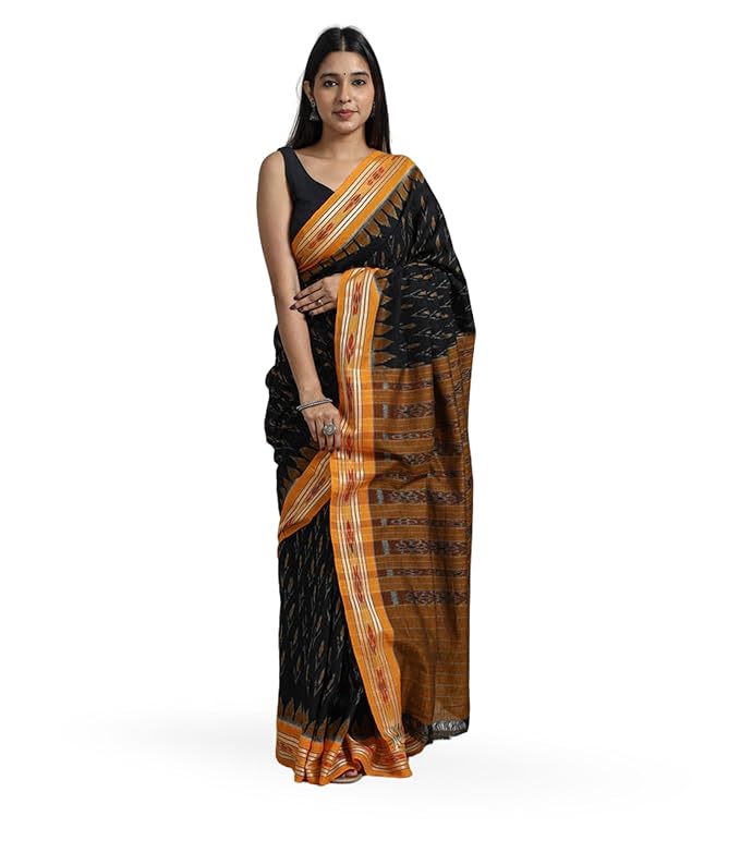 Odisha Sambalpuri Handloom Ikat Women's Cotton Saree Traditional Craftsmanship Double Ikat Weaving Floral and Rich Cultural Handmade Ethnic Saree for Women