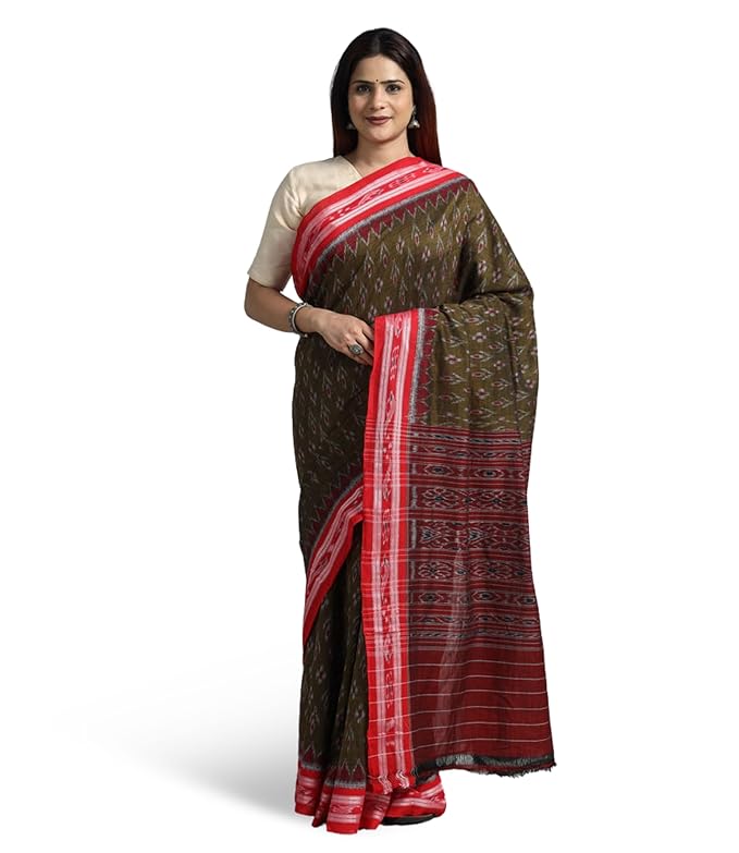 Odisha Sambalpuri Handloom Ikat Women's Cotton Saree Traditional Double Ikat Weaving Floral and Rich Cultural Ethnic Saree Without Blouse