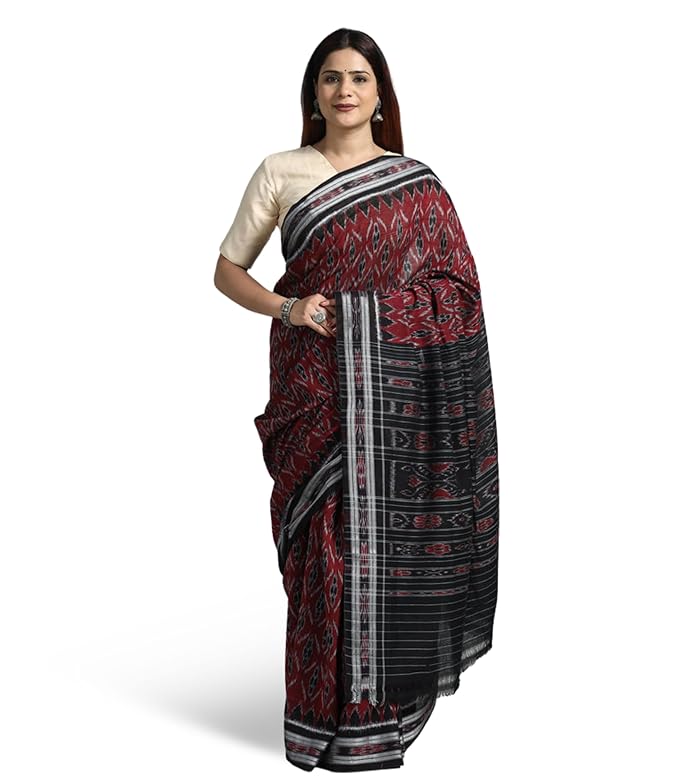 Odisha Sambalpuri Handloom Ikat Women's Cotton Saree Traditional Double Ikat Weaving Floral and Rich Cultural Ethnic Saree Without Blouse