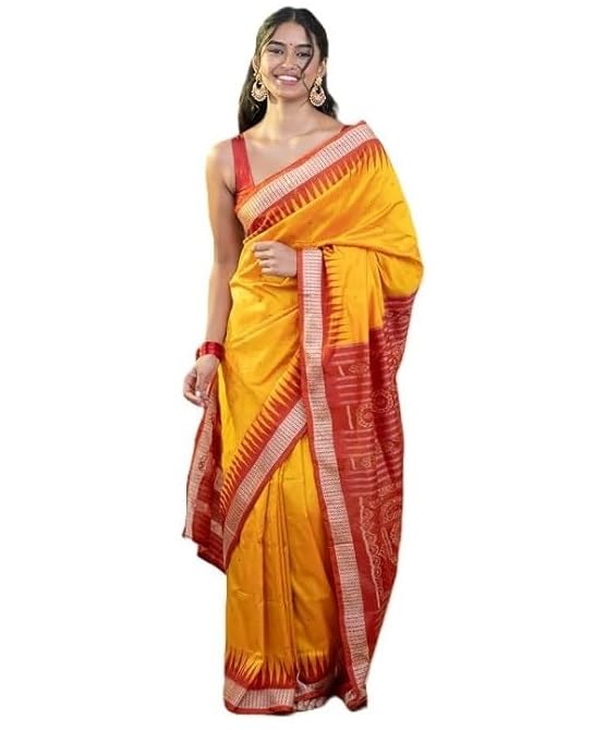 Utkal Handloom Handmade Pure Bomkai Silk Saree Khandua Natural Silk Ikkat Sambalpuri Saree For Women/Ethnic Wear/Traditonal Saree/Handloom Saree With Regular Fit Blouse Piece