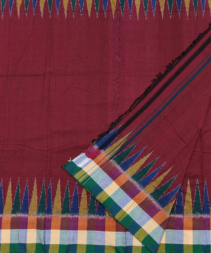 Traditional Sambalpuri Cotton Dhoti Temple Border, Handwoven 4 x 1.10 meters