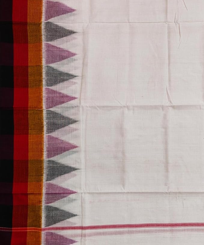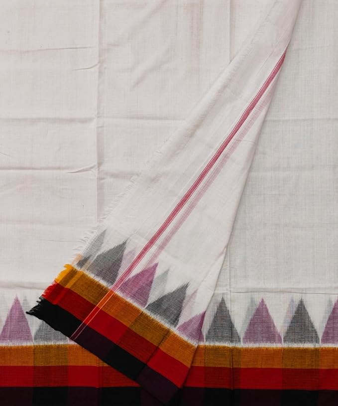 Traditional Sambalpuri Cotton Dhoti Temple Border, Handwoven 4 x 1.10 meters
