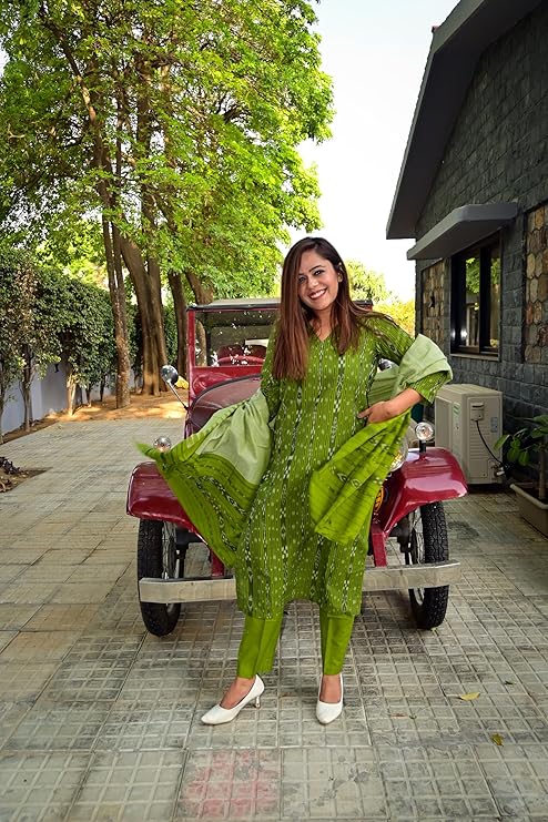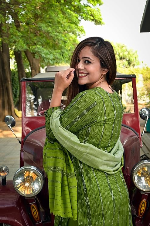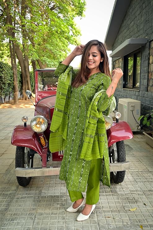 3-Piece Unstitched Suit Odisha Sambalpuri Handloom unstitched salwar suit for women Women's Ikat Cotton Ethnic Dress Material (M-15)