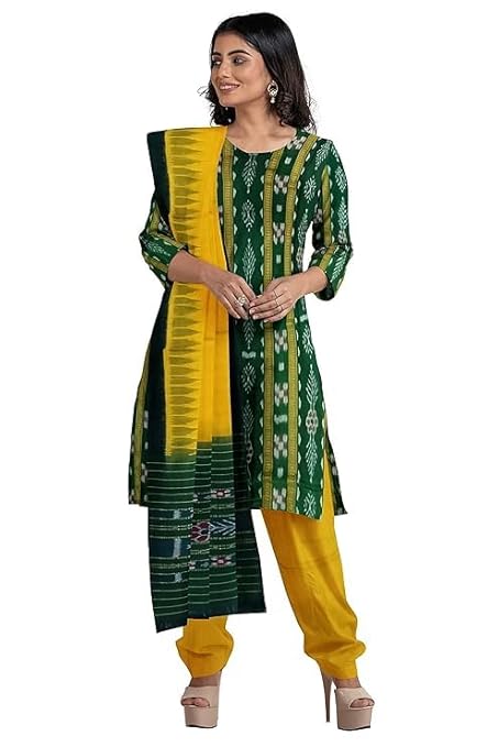 Odisha Sambalpuri Handloom Women's Ikat Cotton Ethnic Dress Material Set Unstitched salwar suit for Women's - By Utkal Handlooms
