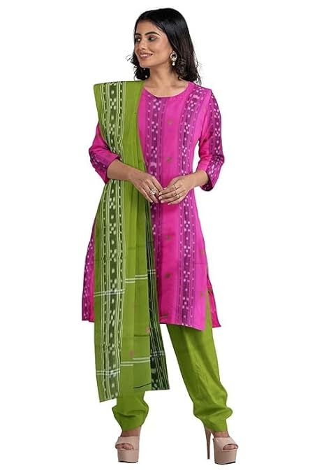 Odisha Sambalpuri Handloom Women's Ikat Cotton Ethnic Dress Material Set Unstitched Traibal Print salwar suit for Women's - By Utkal Handlooms