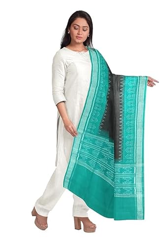 Odisha Sambalpuri Handloom Cotton Dupatta with weaving and Ikat woven border from the Weavers of Odisha Temple Border & Stole For Girls & Women