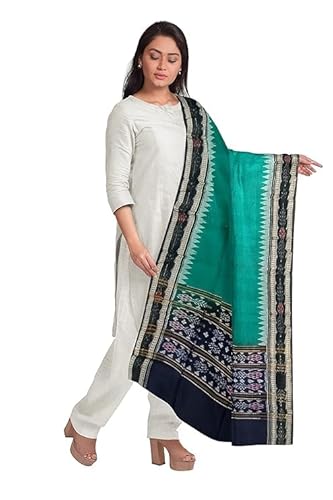 Odisha Sambalpuri Handloom Cotton Dupatta with weaving and Ikat woven border from the Weavers of Odisha Temple Border & Stole For Girls & Women