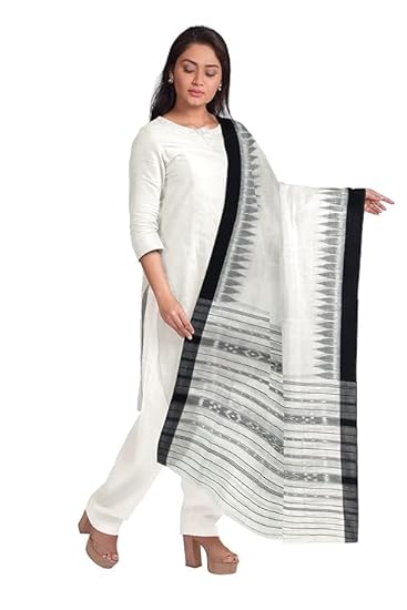 Odisha Sambalpuri Handloom Cotton Dupatta with weaving and Ikat woven border from the Weavers of Odisha Temple Border & Stole For Girls & Women