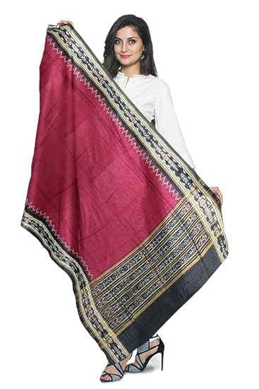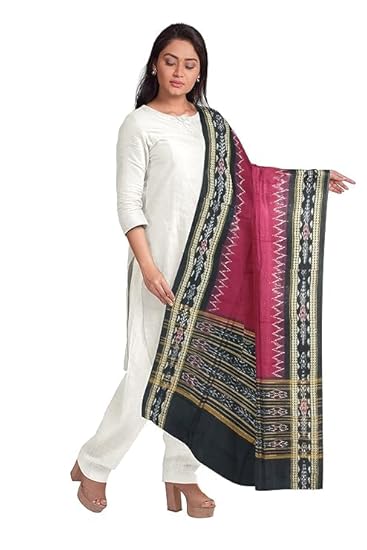 Odisha Sambalpuri Handloom Cotton Dupatta with weaving and Ikat woven border from the Weavers of Odisha Temple Border & Stole For Girls & Women