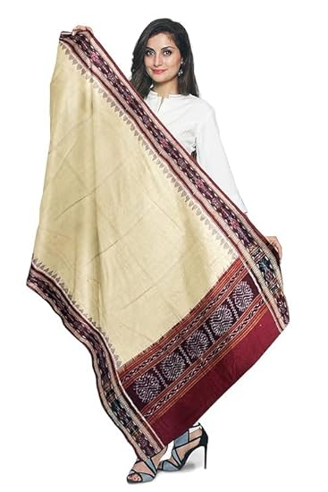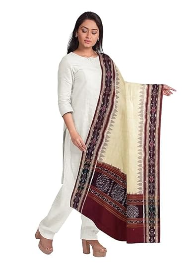 Odisha Sambalpuri Handloom Cotton Dupatta with weaving and Ikat woven border from the Weavers of Odisha Temple Border & Stole For Girls & Women
