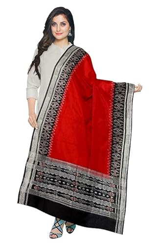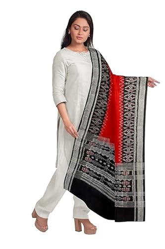 Odisha Sambalpuri Handloom Cotton Dupatta with weaving and Ikat woven border from the Weavers of Odisha Temple Border & Stole For Girls & Women