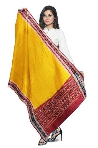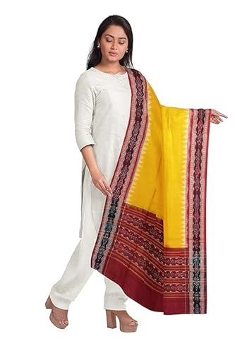 Odisha Sambalpuri Handloom Cotton Dupatta with weaving and Ikat woven border from the Weavers of Odisha Temple Border & Stole For Girls & Women