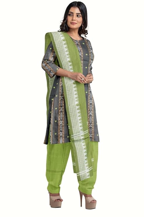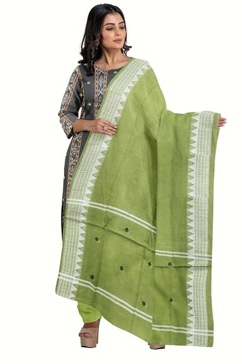 Odisha Sambalpuri Handloom Cotton Dupatta with weaving and Ikat woven border from the Weavers of Odisha Temple Border & Stole For Girls & Women (Multicolor 18, 2.5 Meter)