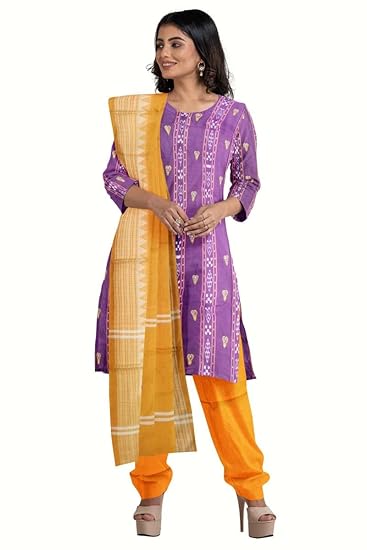 Odisha Sambalpuri Handloom Cotton Dupatta with weaving and Ikat woven border from the Weavers of Odisha Temple Border & Stole For Girls & Women (Multicolor 22, 2.5 Meter)