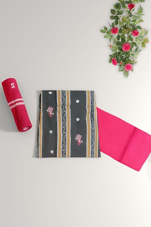 Odisha Sambalpuri Handloom Cotton Dupatta with weaving and Ikat woven border from the Weavers of Odisha Temple Border & Stole For Girls & Women (Multicolor 23, 2.5 Meter)