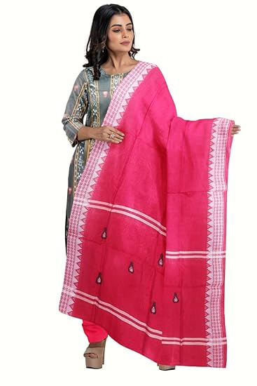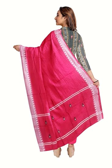 Odisha Sambalpuri Handloom Cotton Dupatta with weaving and Ikat woven border from the Weavers of Odisha Temple Border & Stole For Girls & Women (Multicolor 4, 2.5 Meter)