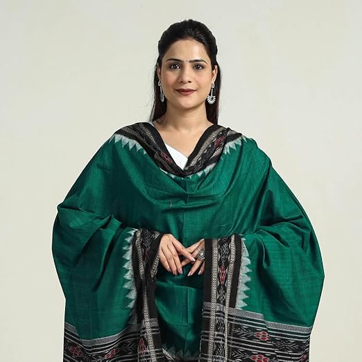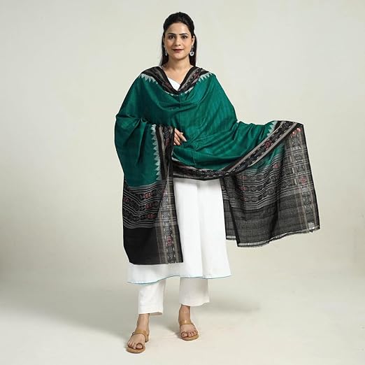 Odisha Sambalpuri Handloom Cotton Dupatta with weaving and Ikat woven border from the Weavers Stole for Girls & Women