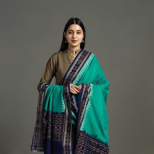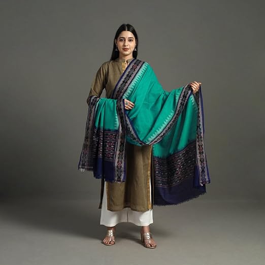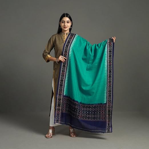 Odisha Sambalpuri Handloom Cotton Dupatta with weaving and Ikat woven border from the Weavers Stole for Girls & Women