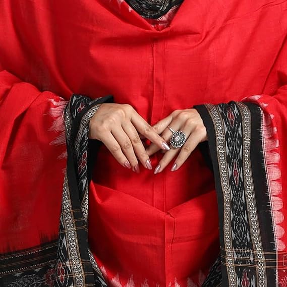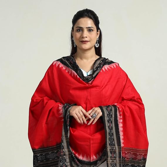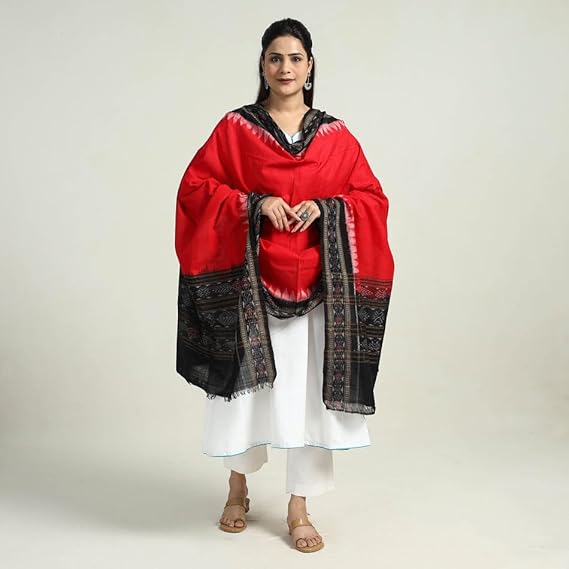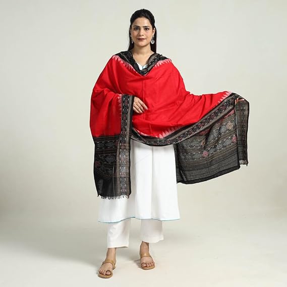 Odisha Sambalpuri Handloom Cotton Dupatta with weaving and Ikat woven border from the Weavers Stole for Girls & Women