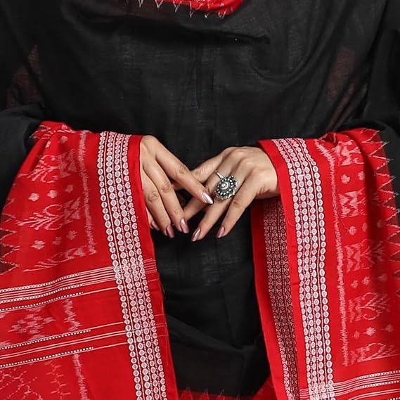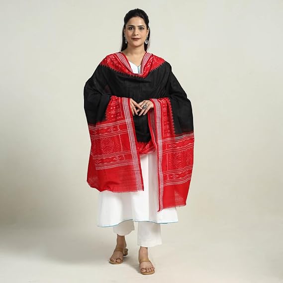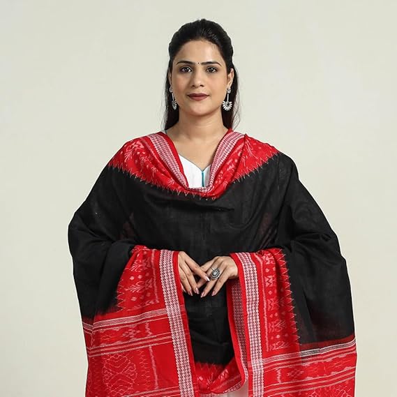 Odisha Sambalpuri Handloom Cotton Dupatta with weaving and Ikat woven border from the Weavers Stole for Girls & Women
