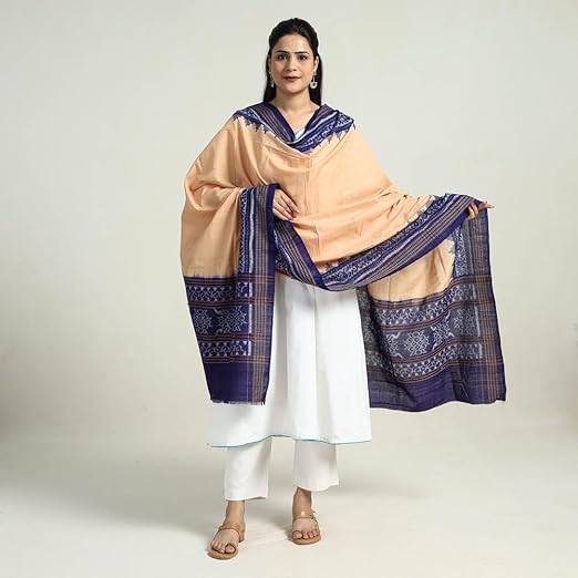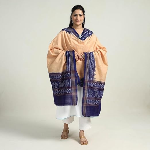 Odisha Sambalpuri Handloom Cotton Dupatta with weaving and Ikat woven border from the Weavers Stole for Girls & Women