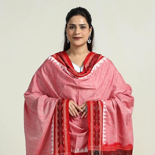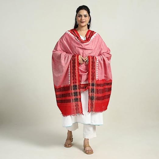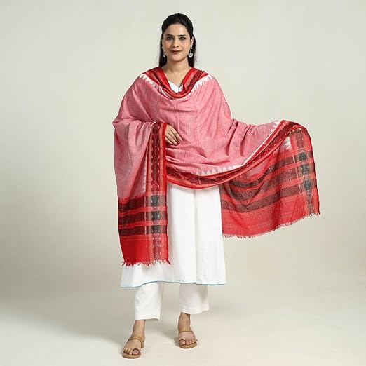Odisha Sambalpuri Handloom Cotton Dupatta with weaving and Ikat woven border from the Weavers Stole for Girls & Women