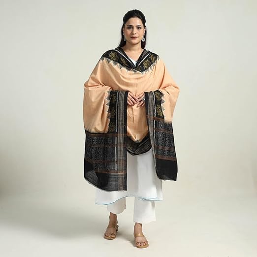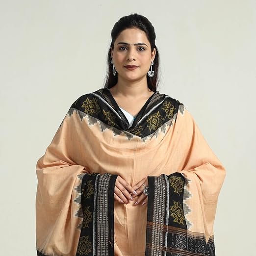 Odisha Sambalpuri Handloom Cotton Dupatta with weaving and Ikat woven border from the Weavers Stole for Girls & Women