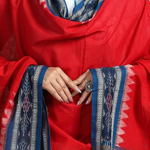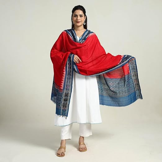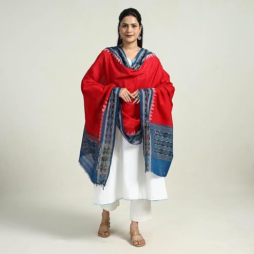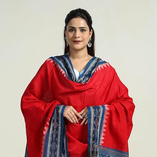 Odisha Sambalpuri Handloom Cotton Dupatta with weaving and Ikat woven border from the Weavers Stole for Girls & Women