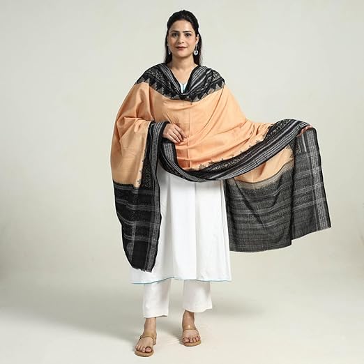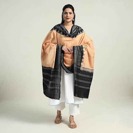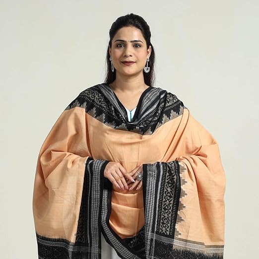 Odisha Sambalpuri Handloom Cotton Dupatta with weaving and Ikat woven border from the Weavers Stole for Girls & Women