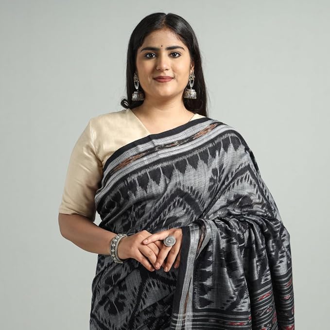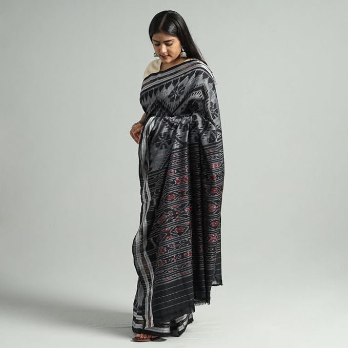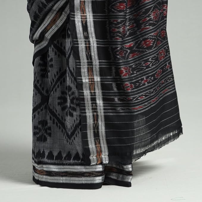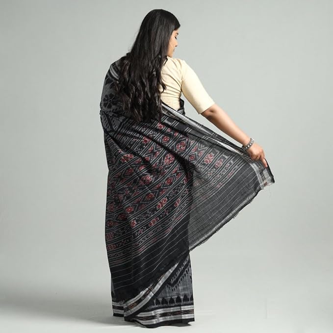 disha Sambalpuri Handloom Ikat Women's Cotton Saree Traditional Craftsmanship Double Ikat Weaving Floral and Rich Cultural Ethnic Saree Without Blouse