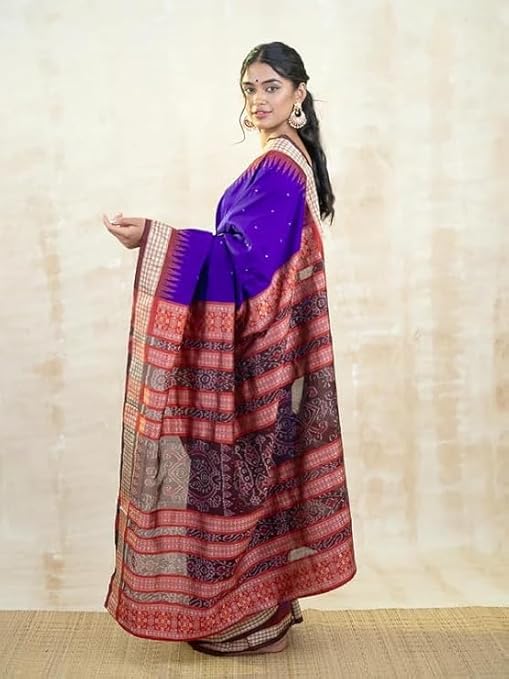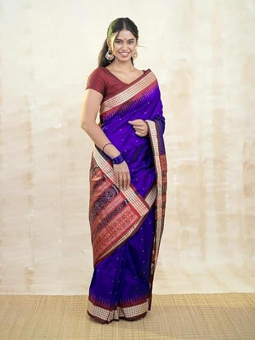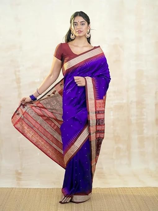 Handmade Pure Bomkai Silk Saree Khandua Natural Silk Ikkat Sambalpuri Saree For Women/Ethnic Wear/Traditonal Saree/Handloom Saree With Regular Fit Blouse Piece