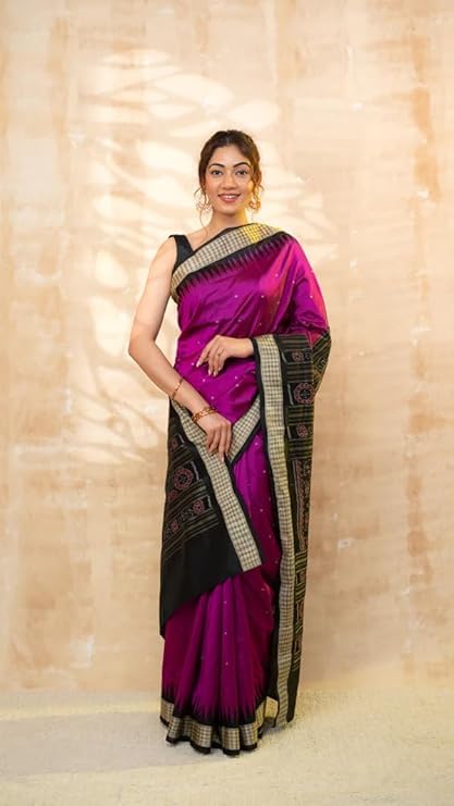Handmade Pure Bomkai Silk Saree Khandua Natural Silk Ikkat Sambalpuri Saree For Women/Ethnic Wear/Traditonal Saree/Handloom Saree With Regular Fit Blouse Piece