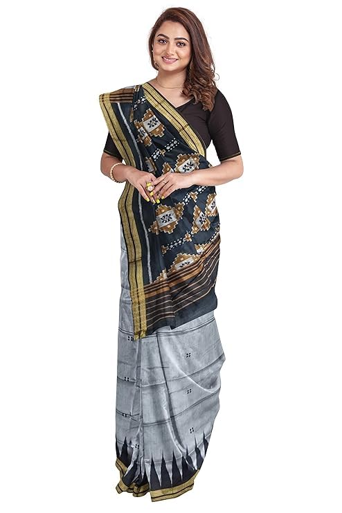 Handmade Pure Bomkai Silk Saree Khandua Natural Silk Ikkat Sambalpuri Saree For Women/Ethnic Wear/Traditonal Saree/Handloom Saree With Regular Fit Blouse Piece