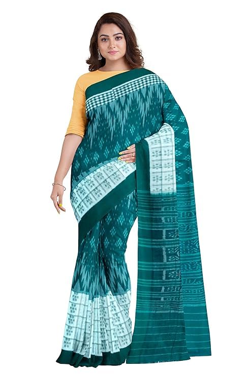 Odisha Sambalpuri Handloom Ikat Women Cotton Saree, Odisha Handloom Handmade Pure Cotton Khandua Saree, Ikkat Orissa Traditional Handloom Saree Without Blouse EMS16