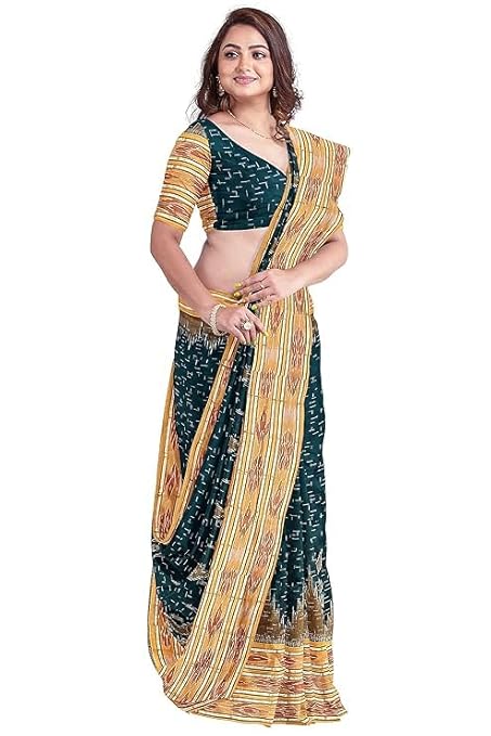 Odisha Sambalpuri Handloom Ikat Women Cotton Saree, Odisha Handloom Handmade Pure Cotton Khandua Saree, Ikkat Orissa Traditional Handloom Saree Without Blouse EMS202