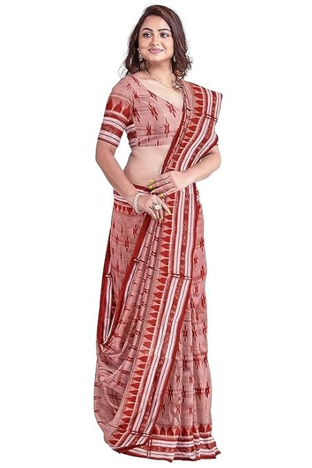 Odisha Sambalpuri Handloom Ikat Women Cotton Saree, Odisha Handloom Handmade Pure Cotton Khandua Saree, Ikkat Orissa Traditional Handloom Saree Without Blouse EMS208
