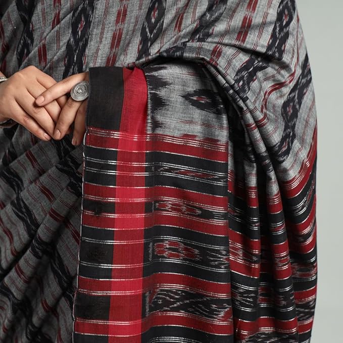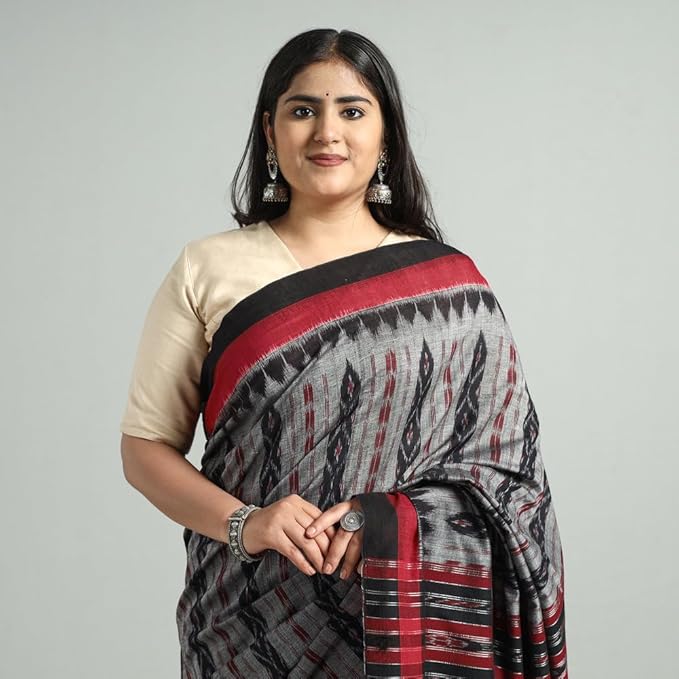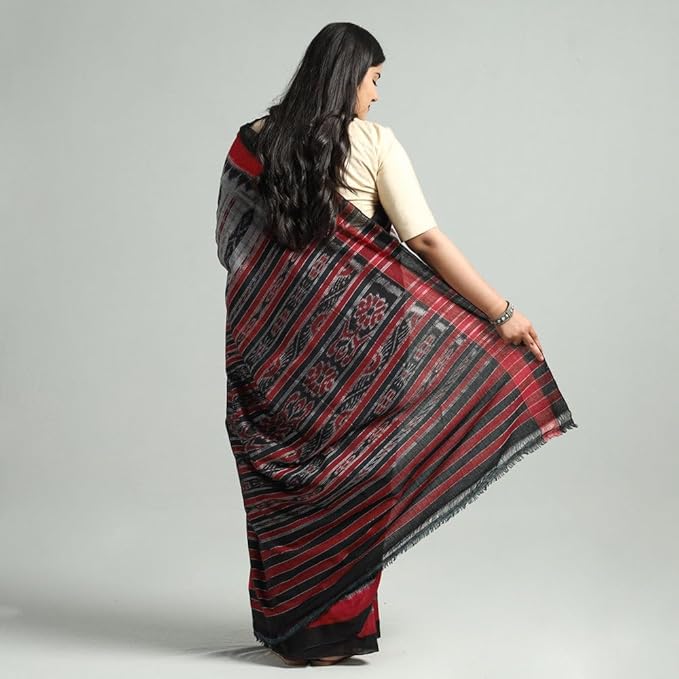 Odisha Sambalpuri Handloom Ikat Women's Cotton Saree Traditional Craftsmanship Double Ikat Weaving Floral and Rich Cultural Ethnic Saree Without Blouse