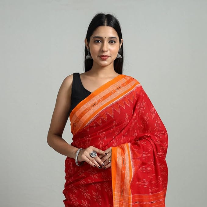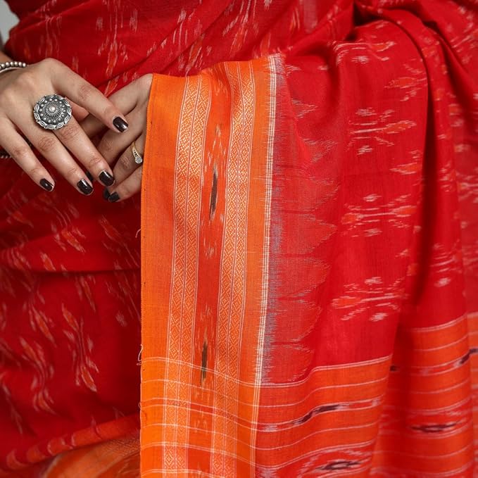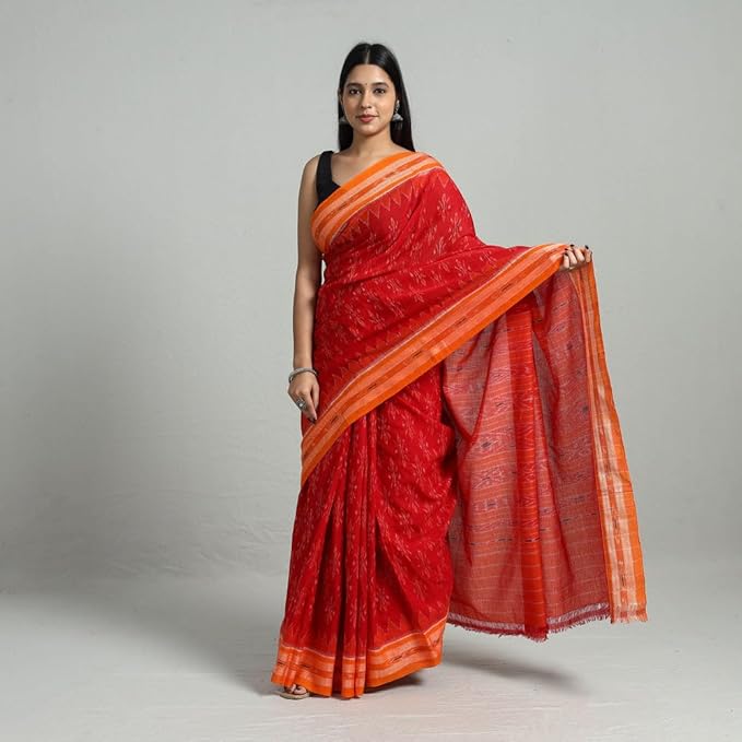 Odisha Sambalpuri Handloom Ikat Women's Cotton Saree Traditional Craftsmanship Double Ikat Weaving Floral and Rich Cultural Handmade Ethnic Saree for Women