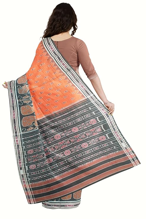 Odisha Sambalpuri Handloom Ikat Women's Cotton Saree Traditional Craftsmanship Double Ikat Weaving Floral and Rich Cultural Heritage (M-11)