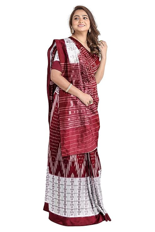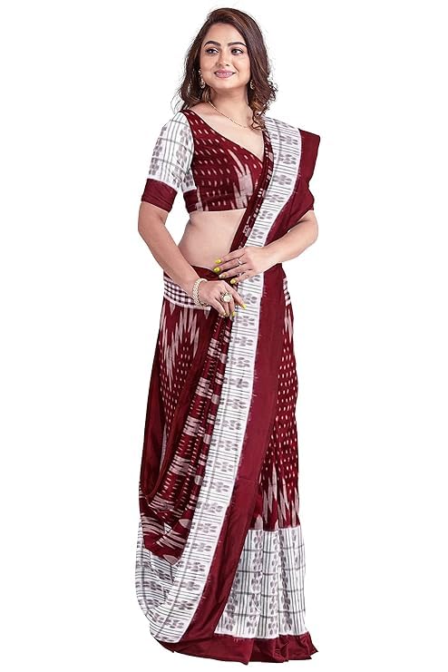 Odisha Sambalpuri Handloom Ikat Women's Cotton Saree Traditional Craftsmanship Double Ikat Weaving Floral and Rich Cultural Heritage (M-19)